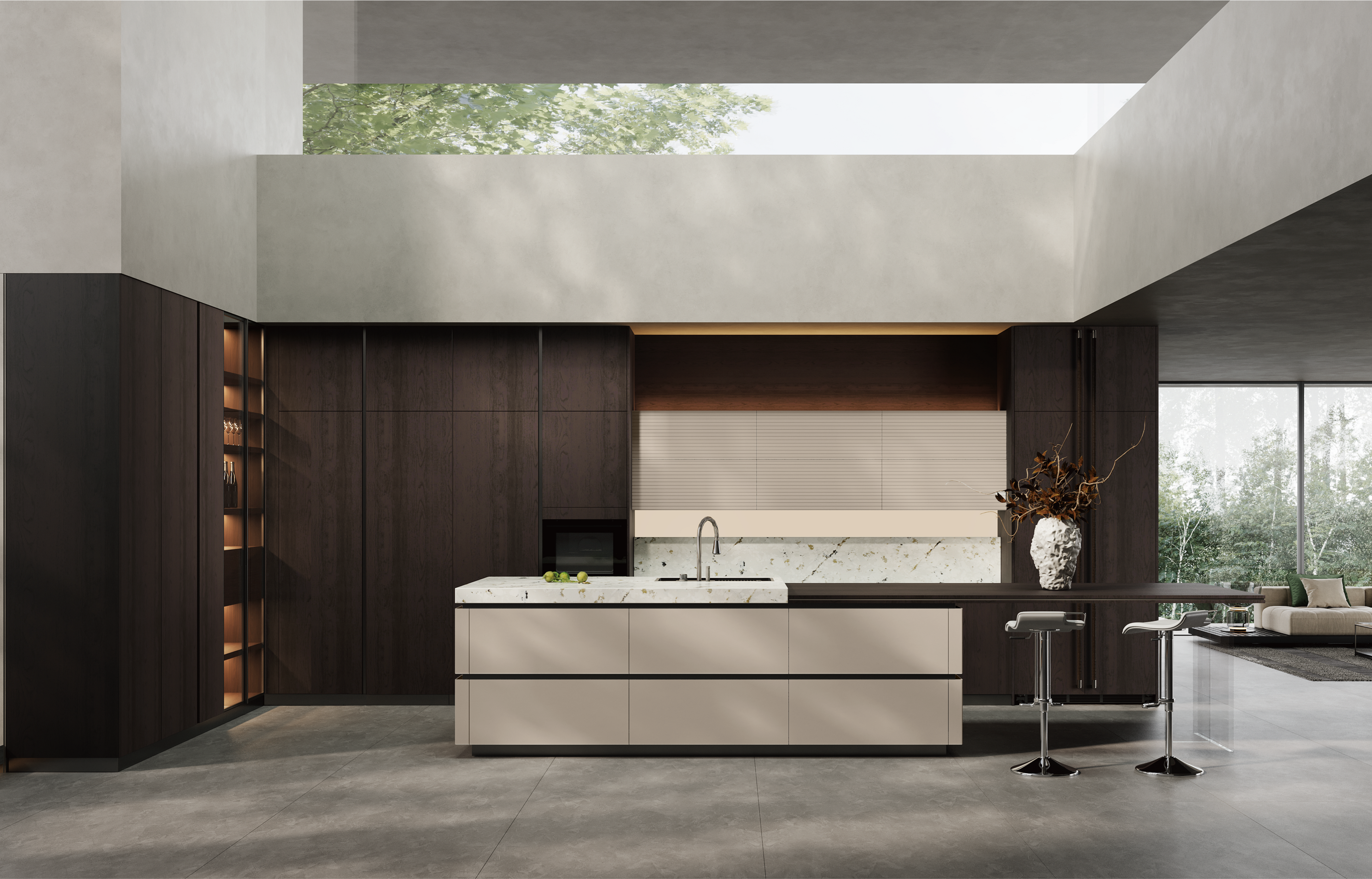 通过AG真人国际厨柜量体裁柜,定制出适合主厨下厨的烹饪区和洗涤区的舒适高度。